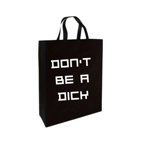 Expertly hand-printed on black polyester fabric, this Don't Be A Dick Tote Bag is the perfect blend of style and functionality. Measuring 41 x 35cm (excluding straps), it provides ample space for all your essentials while also making a statement with its witty slogan. A must-have for any fashion-forward individual.