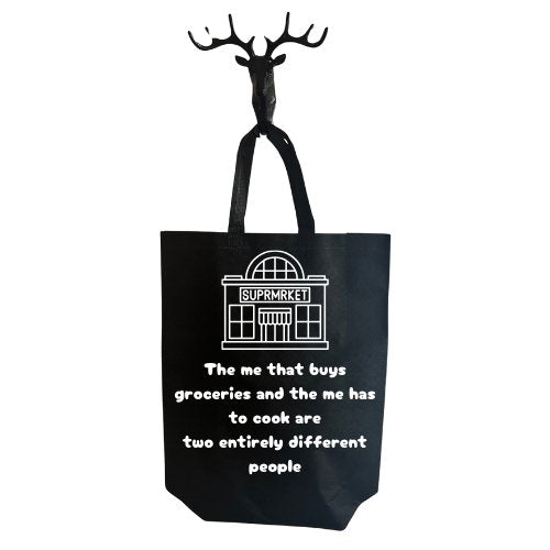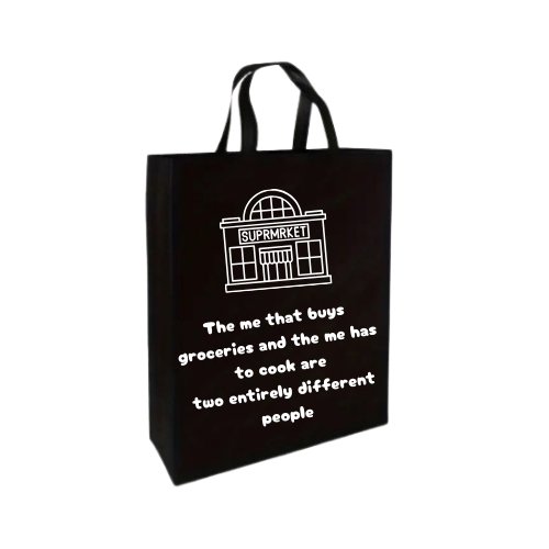 Indulge in some retail therapy with our Grocery Shopping Tote Bag. This black polyester bag boasts handmade vinyl text, adding a touch of humor to your shopping routine. With its sturdy design, it's perfect for standing out in the grocery store. Plus, it supports a good cause by using reusable bags. Allow an extra day for production.
