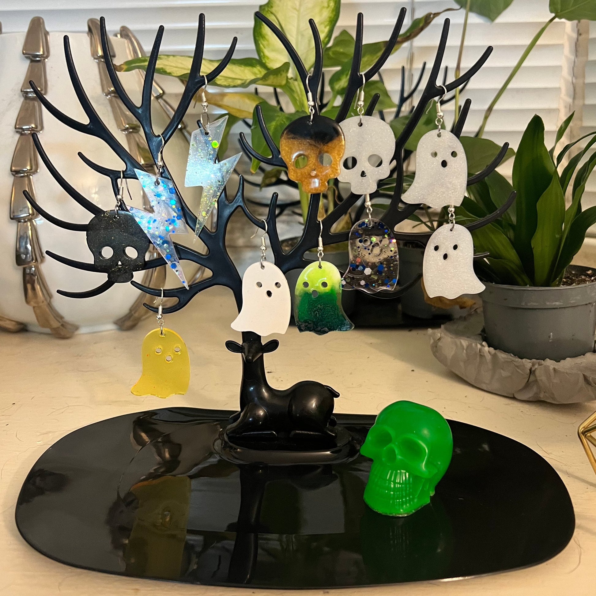 Handmade Gold Glitter Black Skull Resin Earrings